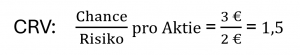 Deine Chance von 3 € und Dein Risiko von 2 € pro Aktie ergeben ein CRV von 1,5.