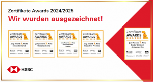 Tipp: Jedes Jahr werden verschiedene Awards in der Zertifikate-Welt verliehen. Hier sind einige Auszeichnungen, die wir bei HSBC verliehen bekommen haben.